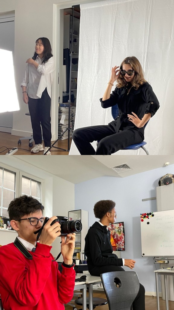In October we also covered the topic of lighting and how different types of light can affect the context, genre and mood of a film. We installed special equipment and lights in our classroom and photographed each other alternately, changing the foreshortening and angle of illumination to take photos based on different genres.